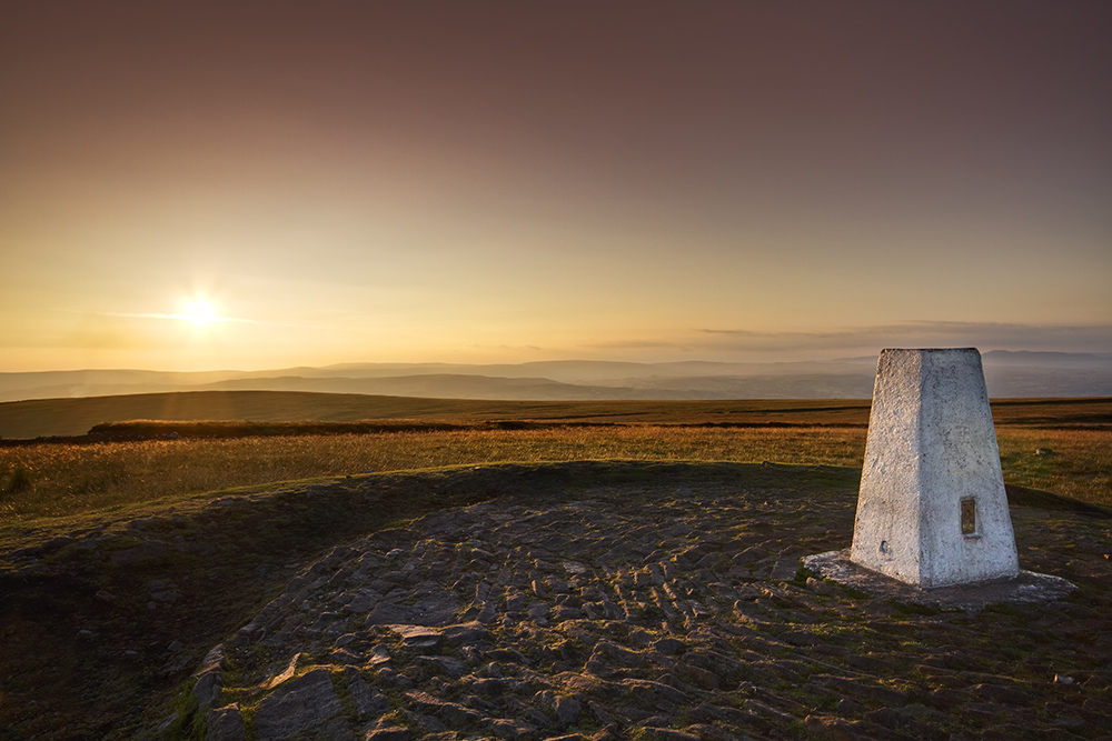 Pendle Hill trig point looking towards Whalley and Clitheroe.Photography by Lee Pilkington